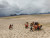 秋天的一场冰雹过后,两个女孩站在她们的位于阿克苏河附近的小屋外。牧民们有时会在迁徙季节时,因没有足够供应牲畜的草料而在这里住几个星期。