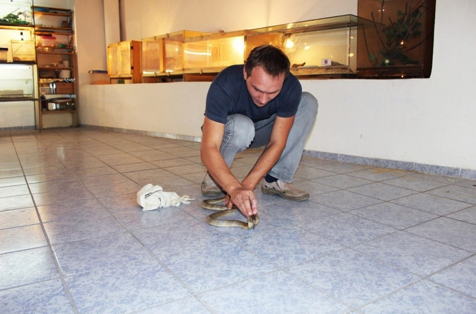 近日,国外论坛流传一位哈萨克斯坦男子赤手捕捉毒蛇采取毒液的勇敢影像。该男子名叫serpentolog Zmeelov,已有15年的捕蛇经验。
