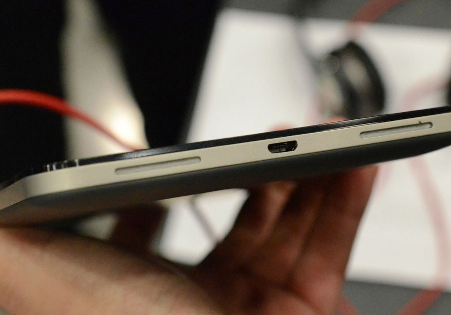 Slate 7分辨率只有1024X600,内部存储空间只有8GB,不过支持存储卡扩展。处理器为1.6Ghz双核ARM CPU,后置300万像素摄像头,前置VGA摄像头,电池续航时间估计最高5小时。