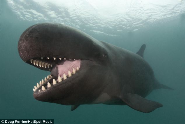 伪虎鲸不惧镜头咧嘴大笑似在打招呼