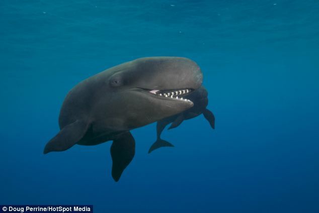 这组照片是美国摄影师道格在夏威夷岛科纳海岸拍摄到的。伪虎鲸实际上不是鲸类,而是海豚的一种。但它们友好的外表具有欺骗性,它们也会攻击并吃掉鲸类动物。成年雄性伪虎鲸可长到20英尺(约合6米)长,体重达2吨,寿命可达60年。