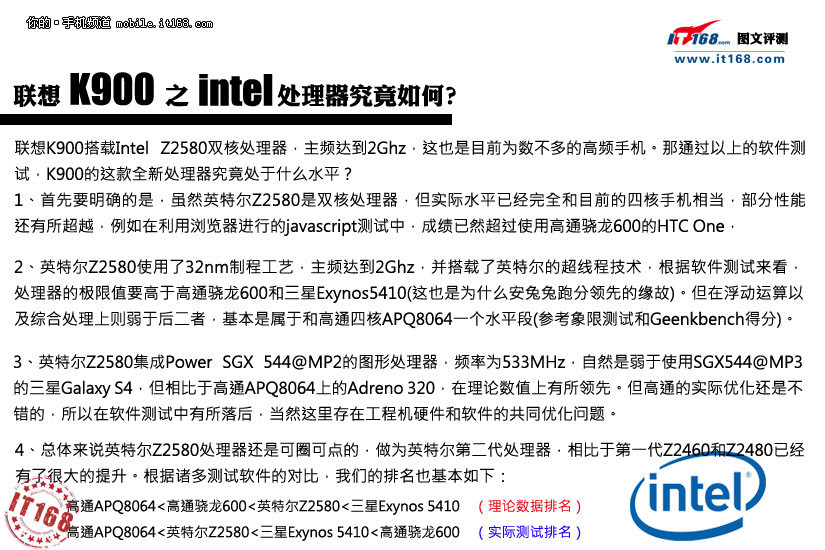 英特尔Z2580力拼四核旗舰 联想K900评测
