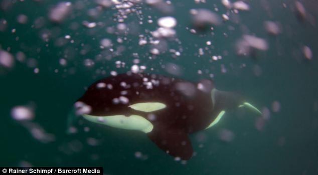 这个虎鲸群由一条背鳍弯曲的雌虎鲸、一条巨大雄虎鲸和另外4条雌虎鲸组成。这条背鳍弯曲的雌虎鲸很像影片《威鲸闯天关》中的著名虎鲸。