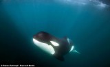 虎鲸靠同伴喂养和照顾的事儿很少见。这个虎鲸群在南非伊丽莎白港附近水域捕猎时,水下摄影师莱纳-辛姆普和它们面对面接触,拍到不少罕见照片。