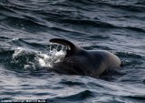 这位摄影师捕捉到这个由7位成员组成的虎鲸群捕食一条长50英尺(约合15米)、重15公吨的布氏鲸的情景。以前的研究显示,虎鲸以捕杀更大的鲸鱼物种著称,但有时只吃猎物的舌头。