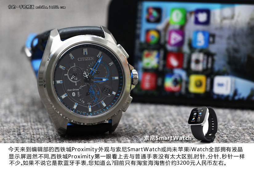 西铁城Proximity第一眼看上去与普通手表没有太大区别,时针、分针、秒针一样不少。如果不说它是款蓝牙手表,您知道么?目前只有淘宝海淘售价约3200元人民币左右。