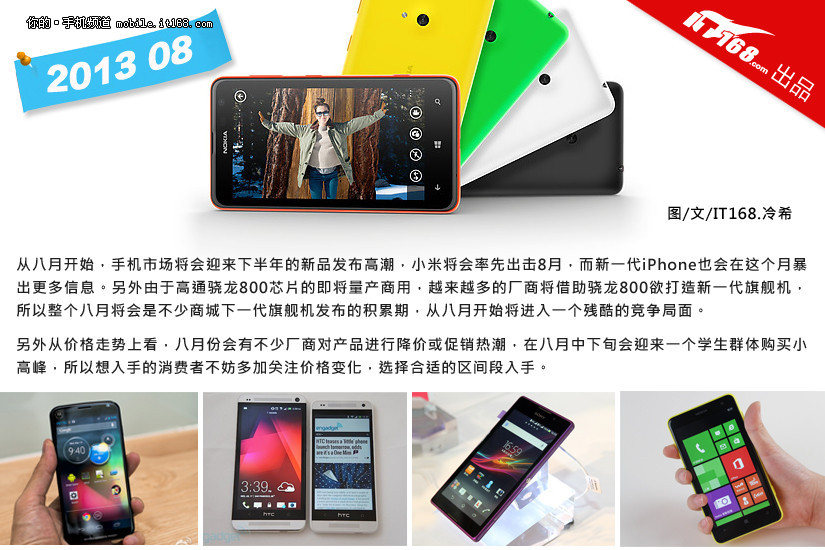 从八月开始,手机市场将会迎来下半年的新品发布高潮,小米将会率先出击8月,而新一代iPhone以及三星Note3也会在这个月暴出更多信息。