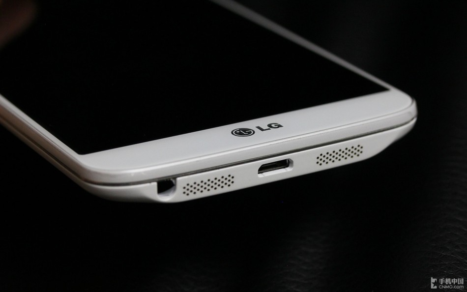 LG G2的外部扬声器类似于iPhone 5的设计,放在了机身底部,一方面出于手机厚度的考虑,另一方面也使手机平放在桌面上时不阻碍播放通道。