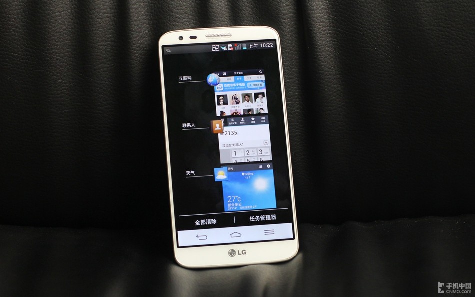 长按Home键,进入后台多任务管理界面,G2加入了全部清除功能和任务管理器。